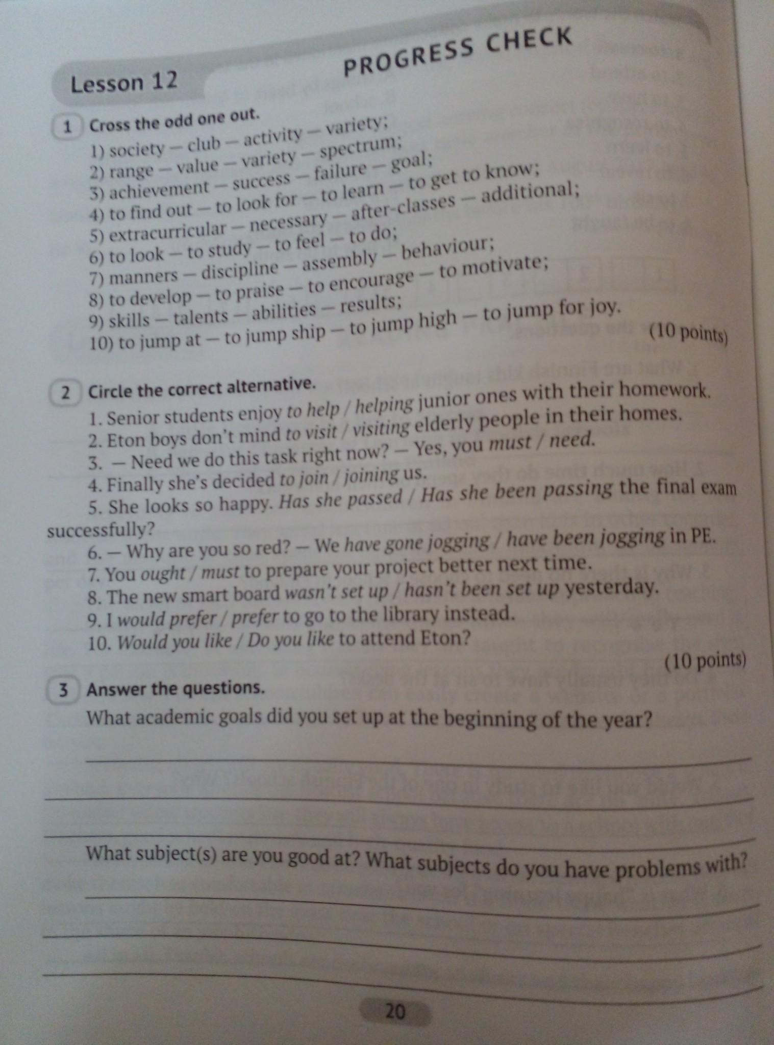 Club,range,failure,to learn, necessary,to feel, assembly,to develop, results,to jump at