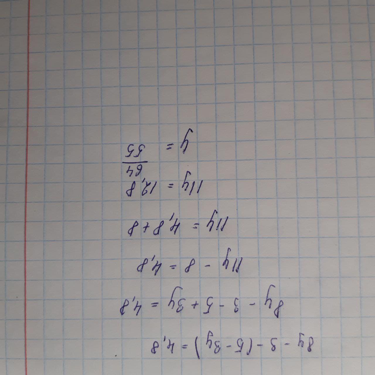8у - 3 - ( 5 - 3у ) = 4,8;