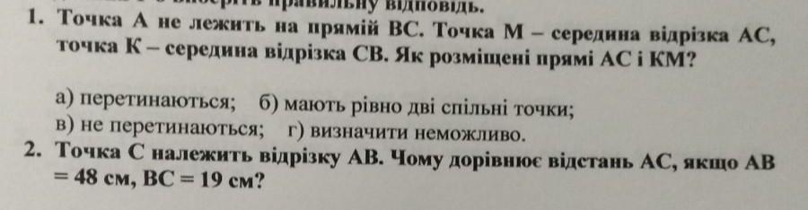 Ответ: 1) а) перетинаються 2) АС=29 см