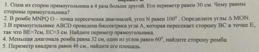 1) 46:4=11,5см - одна сторона