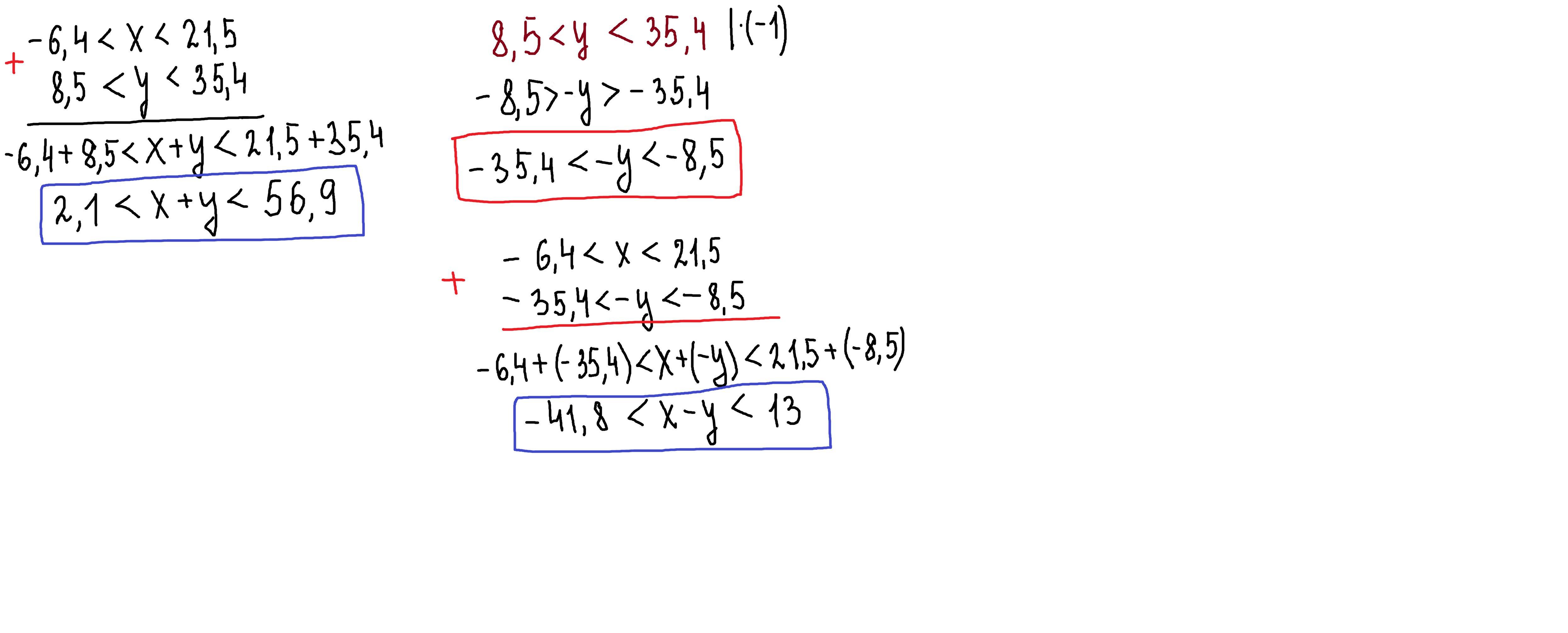 2.сначала найдем -у,умножив неравенство на -1,при этом знаки неравенства поменяются на противоположные.Потом опять сложим почленно части неравенств х и -у