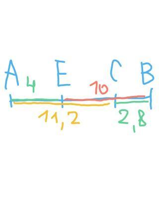 Тогда АС=4*2,8=11,2 см; СВ=2,8 см
