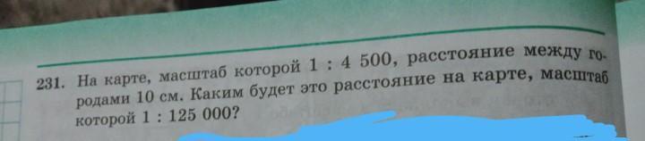 231. На карте, масштаб которой 1:4 500, расстояние между го. родами 10 см. Каким будет это расстояние на карте, масшто которой 1: 125 000? от тарихт та в