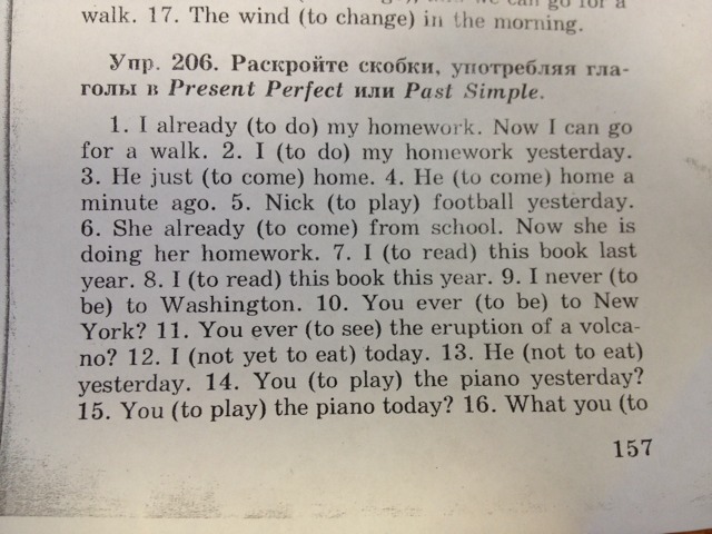 7. read 8. have read 9. have never been 10. Have you ever been... 11. Have you ever seen ... 12. I have not eaten 13. did not eat 14. Did you play 15. Have you played
