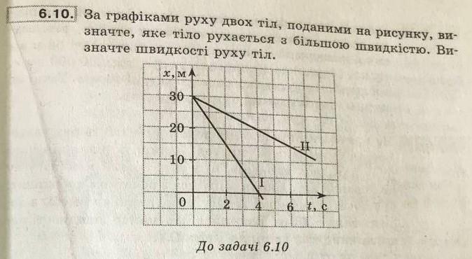 За графіками руху двох тіл, поданими на рисунку, ви значте, яке тіло рухається з більшою швидкістю. Ви значте швидкості руху тіл.