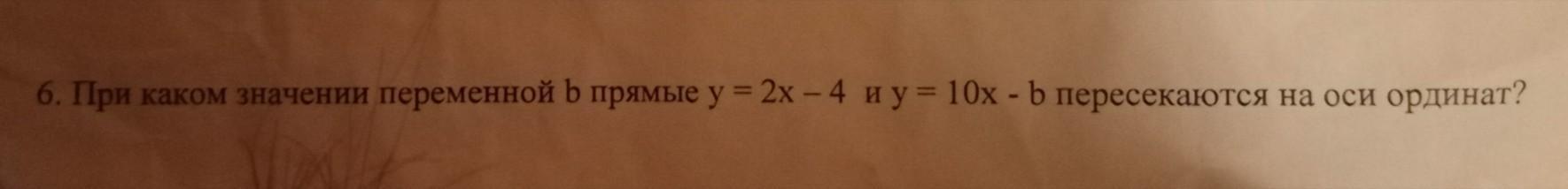 Для того чтобы узнать при каком значении прямые пересекаются, нужно приравнять два выражения: 2х-4=10х-b