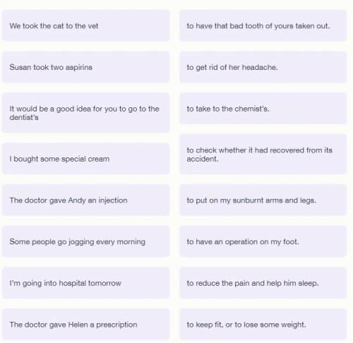 For 8 sentences in the left column find suitable endings from the right column.