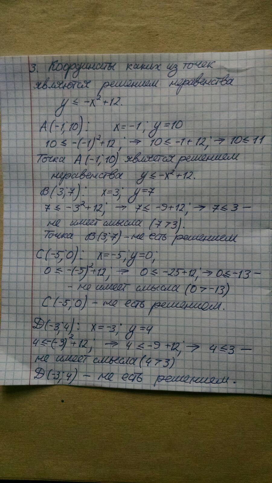 Ответ: 3. Точка А(-1; 10) является решением данного неравенства.