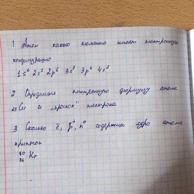 3. порядковый номер показывает, что электронов и протонов по 36, чтоб найти число нейтронов надо из массы вычесть порядковый номер: 80-36=44