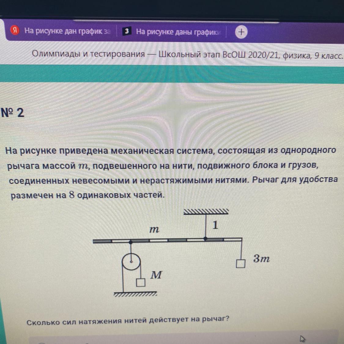 рычага массой т, подвешенного на нити, подвижного блока и грузов,