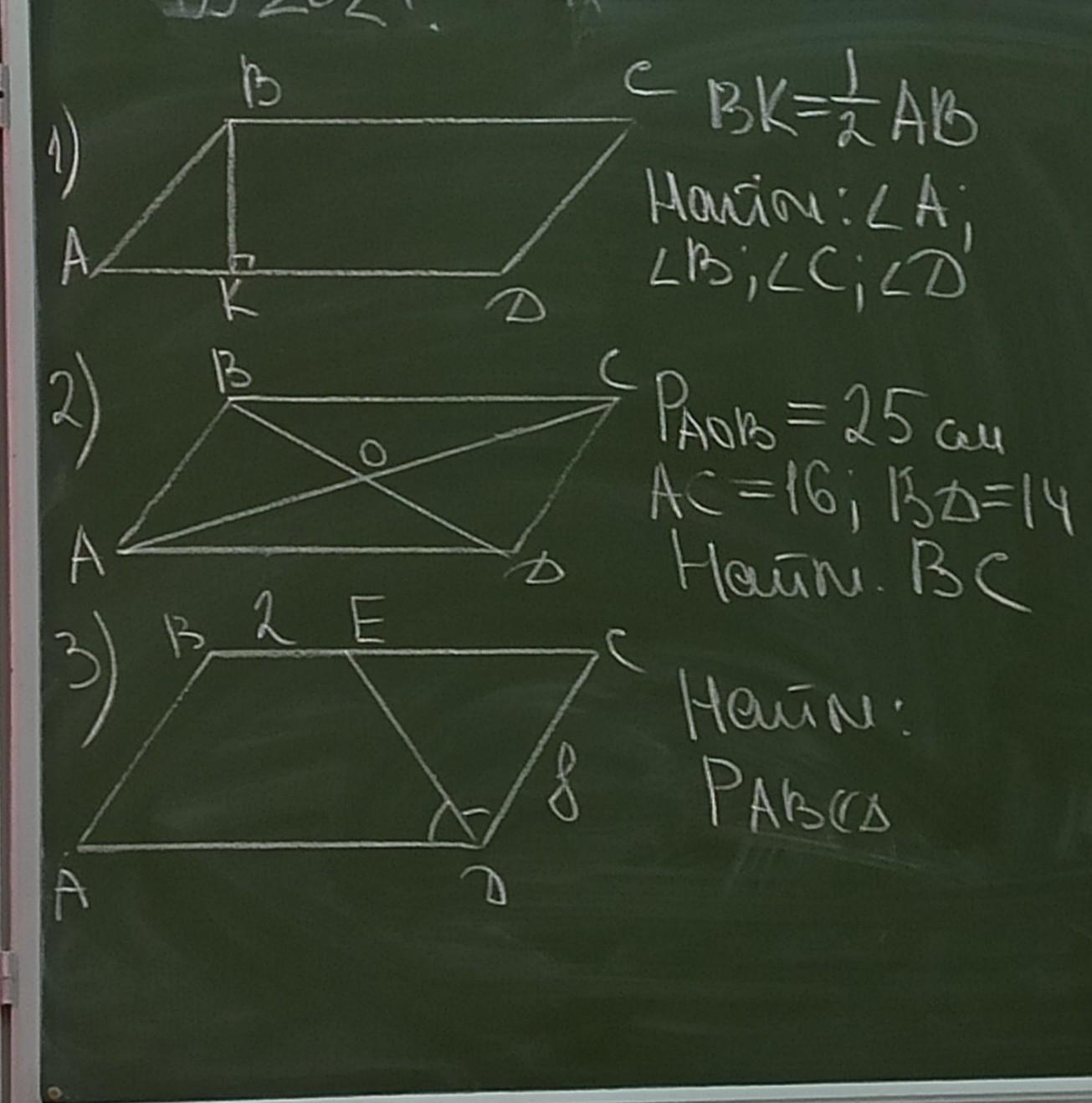 1)Исходя из того,что в треугольнике с углами 90° 60° и 30° гипотенуза в два раза больше,чем катет параллельный углу в 60° <А = 30°