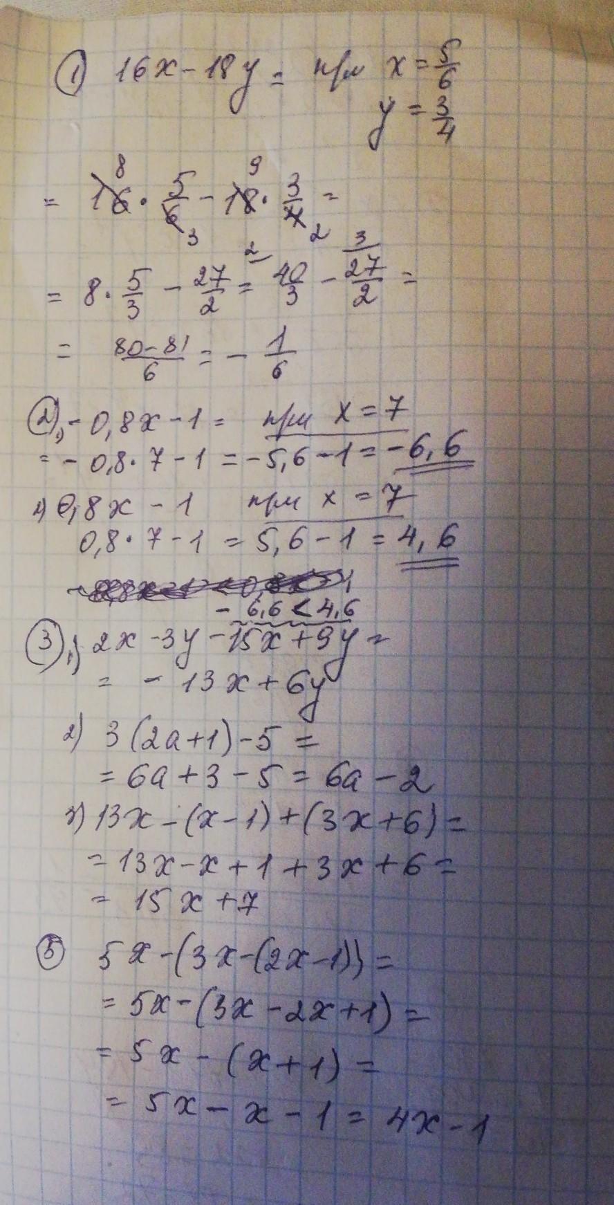2.Сравните значение выражений: -0,8х-1 и 0,8х-1 при х=7