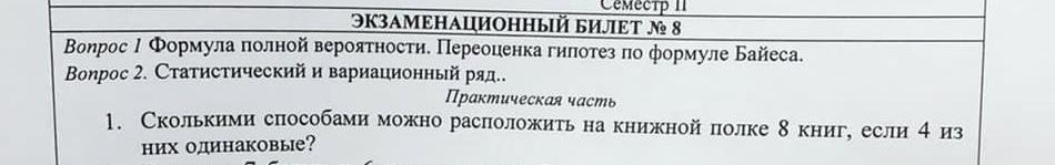 Сколькими способами можно расположить 8 книг на книжной полке, если 4 из них одинаковые?