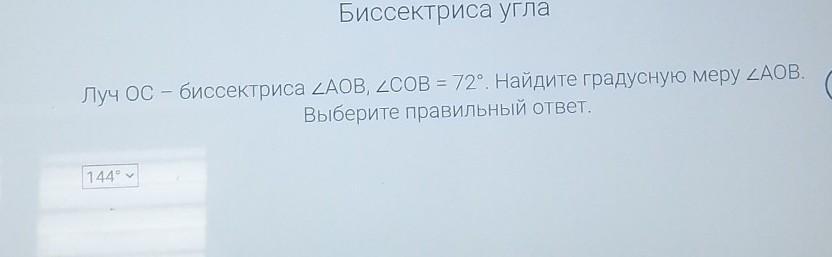 биссектриса делит угол пополам, поэтому нужно 72*2=144