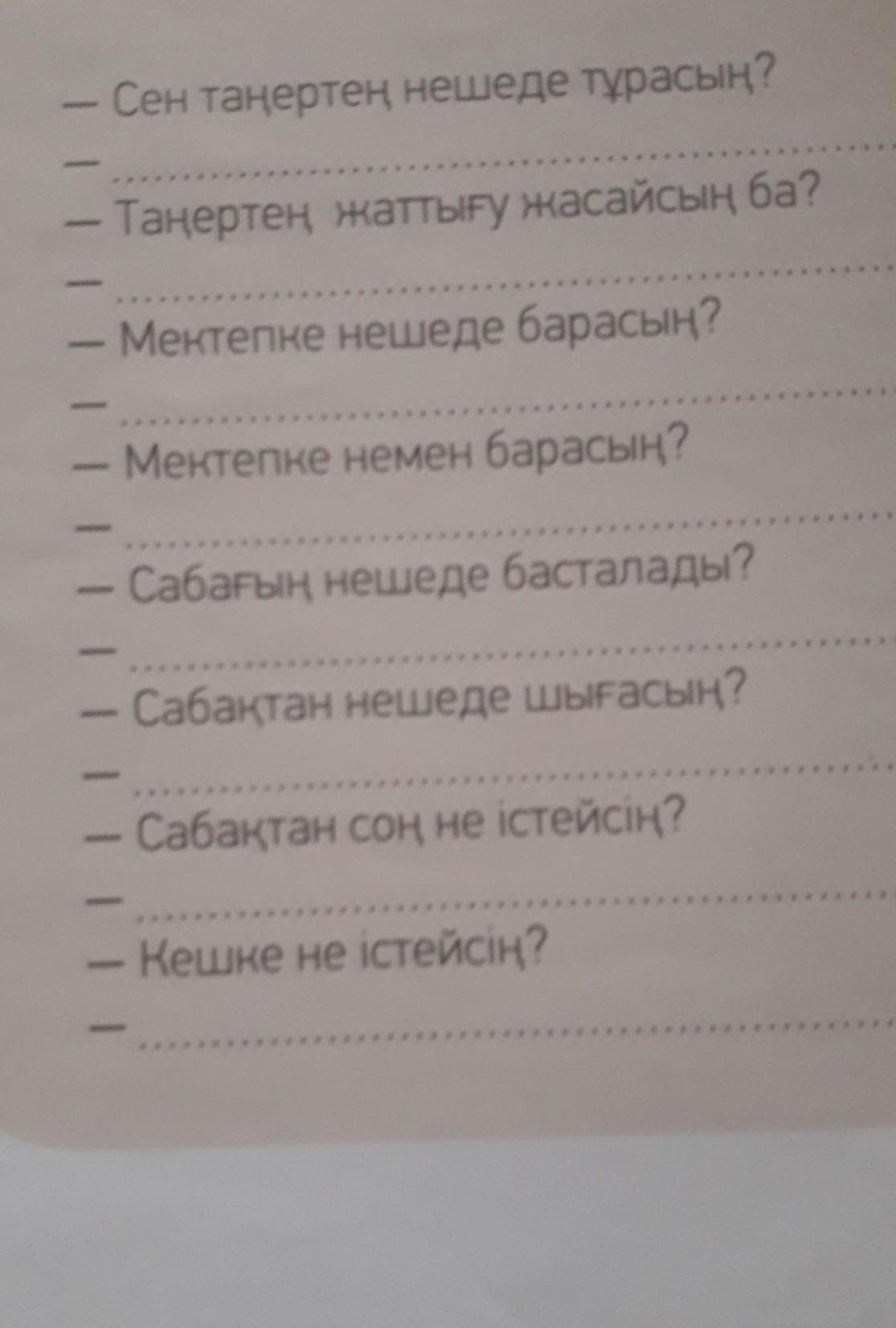 -Сабақтан кейін үй жұмысын орындаймын , содан орындап болған соң тамағымды ішемін.