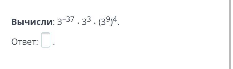 3^(-37) * 3^(3) * (3^9)^(4) = 3^(-37+3) * 3^(36) = 3^(-37+3+36) = 3^(2) = 9