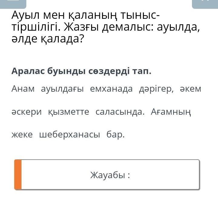 Ауыл мен қаланың тыныс-тіршілігі. Жазғы демалыс: ауылда, әлде қалада? , . . Жауабы можно все задания онлайн мектеп