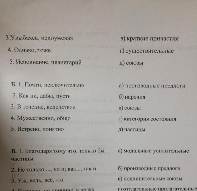 Б - 1. Почти, исключительно - в) союзы