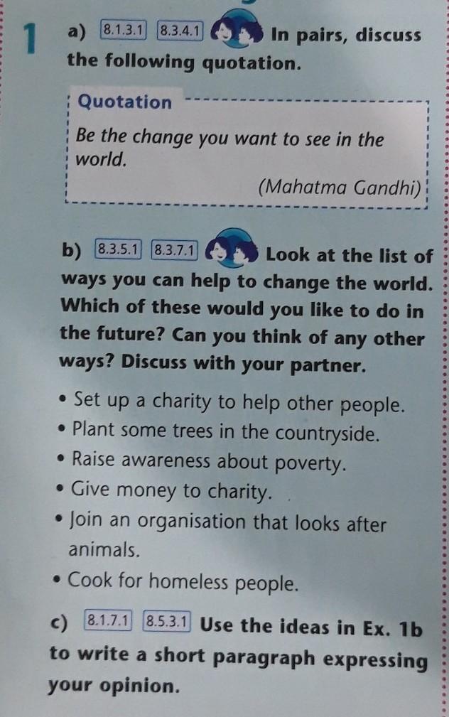 1 a) In pairs, discuss the following quotation. Quotation Be the change you want to see in the world. (Mahatma Gandhi)