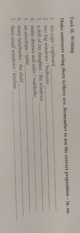 Make sentences using there is/there are. Remember to use the correct preposition - in, on.