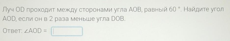 Угол АОB=60⁰; угол АОD=x; угол DOB=2х; АOB=AOD+DOB