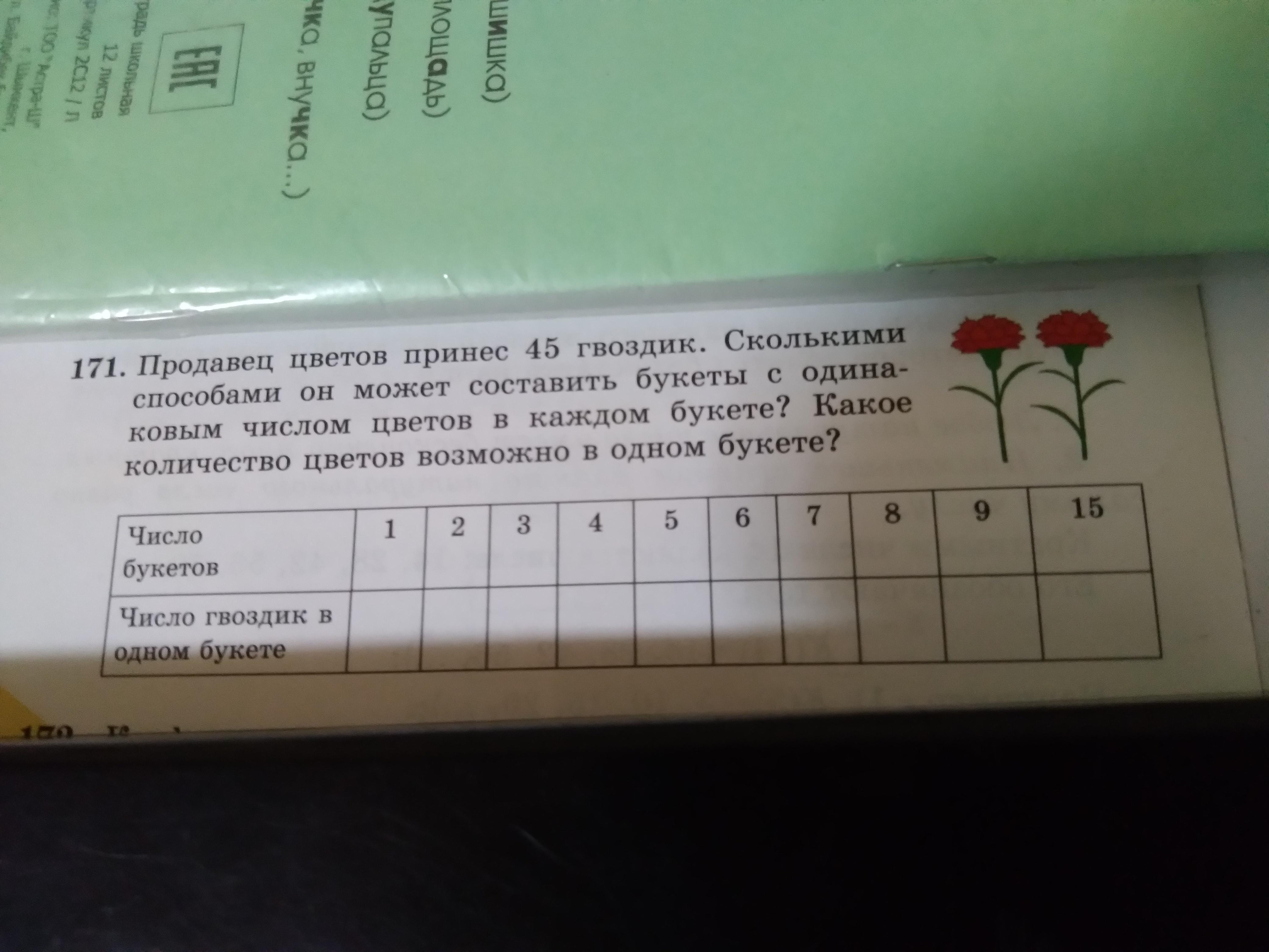 Тоисть чтобы узнать сколько гвоздик будет в каждом букете, да ещё и поровну нам нужно разделить количество гвоздик на букеты и тогда мы узнаём сколько гвоздик в ОДНОМ букете.
