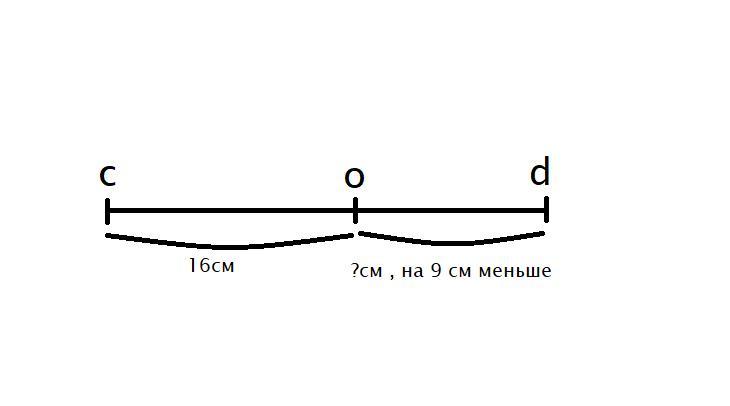 Точка O принадлежит отрезку CD, CO=16 см, отрезок OD на 9 см меньше отрезка CO. Найдите длину отрезка CD. Помогите плиз