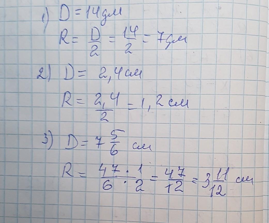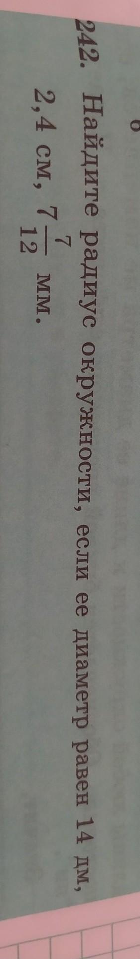 номер 242 найдите радиус окружности если её диаметр равен 14 дм 2,4 см 7 целых 7/12 мм