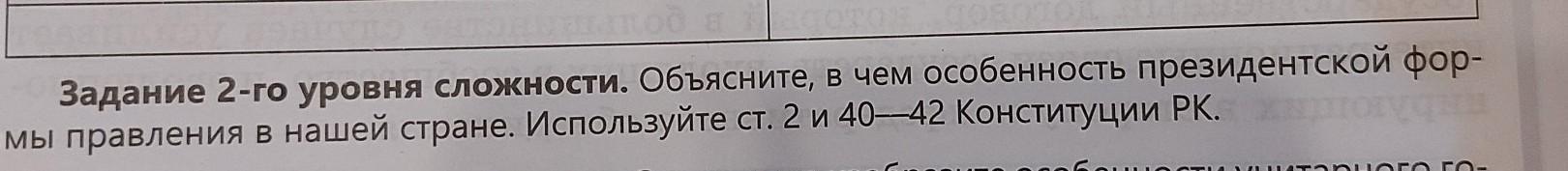 Президентская форма правления-особенность формы правления в Республике Казахстан, заключающаяся в том, что в системе разделения власти Президент Республики занимает правовой статус «над ветвями власти. Это означает, что Президент Республики Казахстан по своему правовому статусу не интегрирован, не «вмонтирован» ни в каком объёме ни в одну из ветвей государственной власти – ни в законодательную, ни в исполнительную, ни в судебную, и находится вне ветвей государственной власти как глава государства и как его высшее должностное лицо. Поэтому в соответствии со статьёй 40 Конституции Республики Казахстан 1995 года именно Президент Республики определяет основные направления внутренней и внешней политики государства, представляет Казахстан внутри страны и в международных отношениях и обеспечивает согласованное функционирование всех ветвей государственной власти и ответственность органов власти перед народом. Кроме того, Президенту Республики принадлежит неограниченное право выступать от имени народа и государства, как избираемому прямо и непосредственно народом.