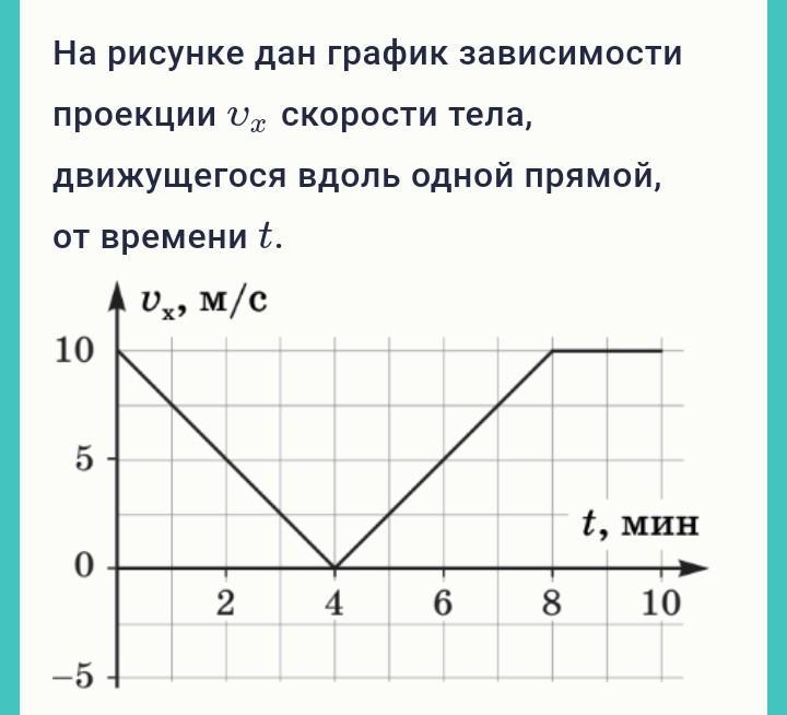 На рисунке дан график зависимости проекции υxυx скорости тела, движущегося вдоль одной прямой, от времени tt. СРОЧНО!!!