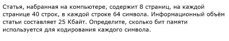 на один символ приходится (25*8*1024)/(5*8*1024)= 10бит