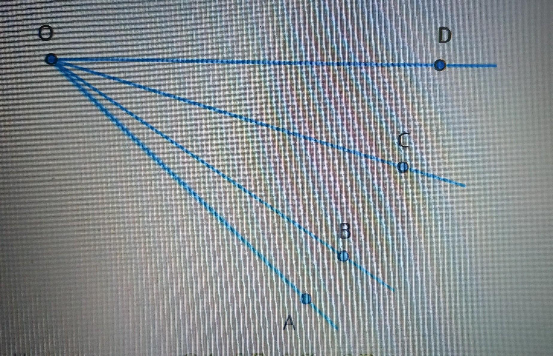 На рисунке лучи OA, OB, OC и OD нарисованы так, что выходят из общей начальной точки O.