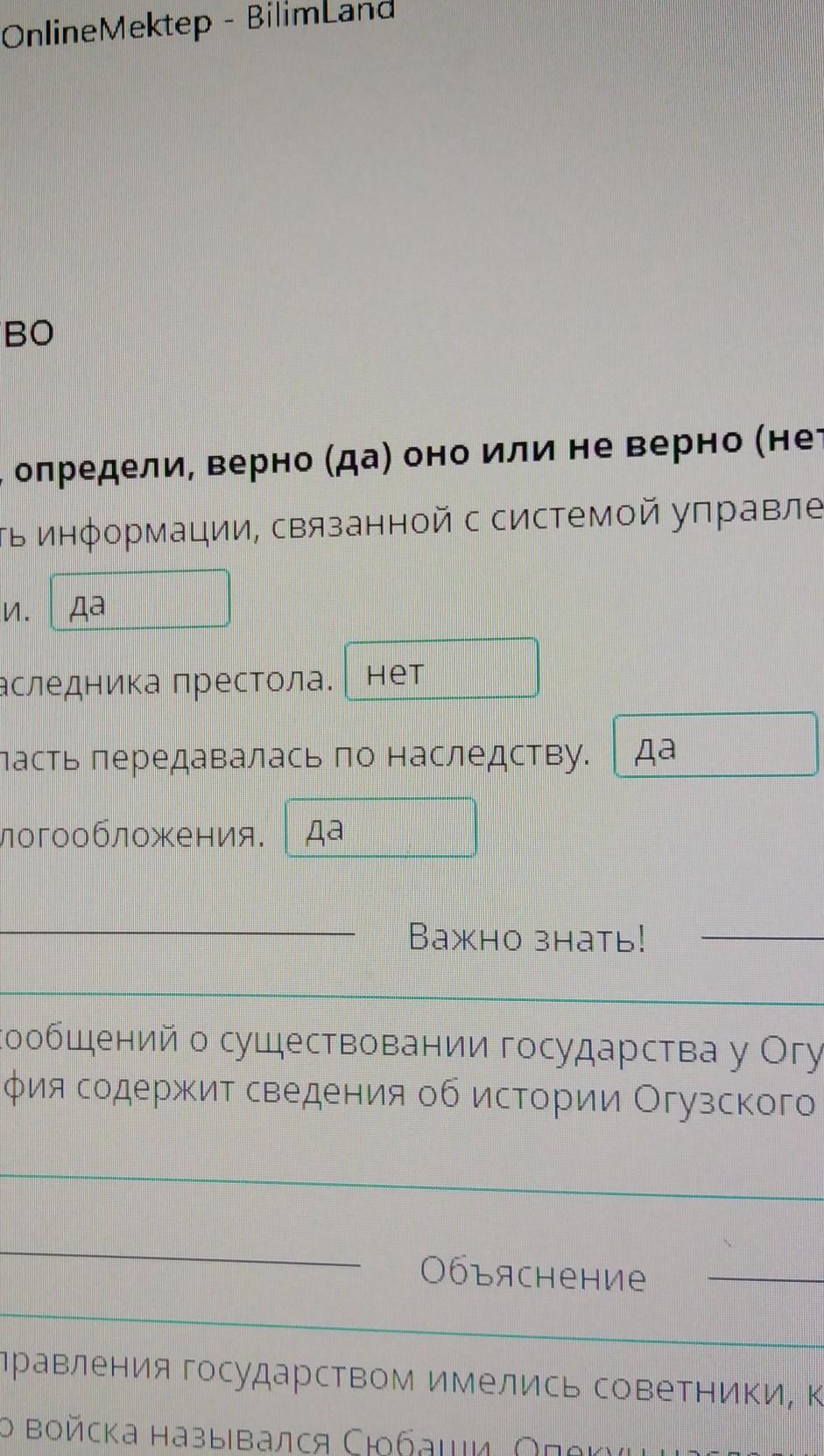 Определите достоверность информации, связанной с системой управления Огузского государства.