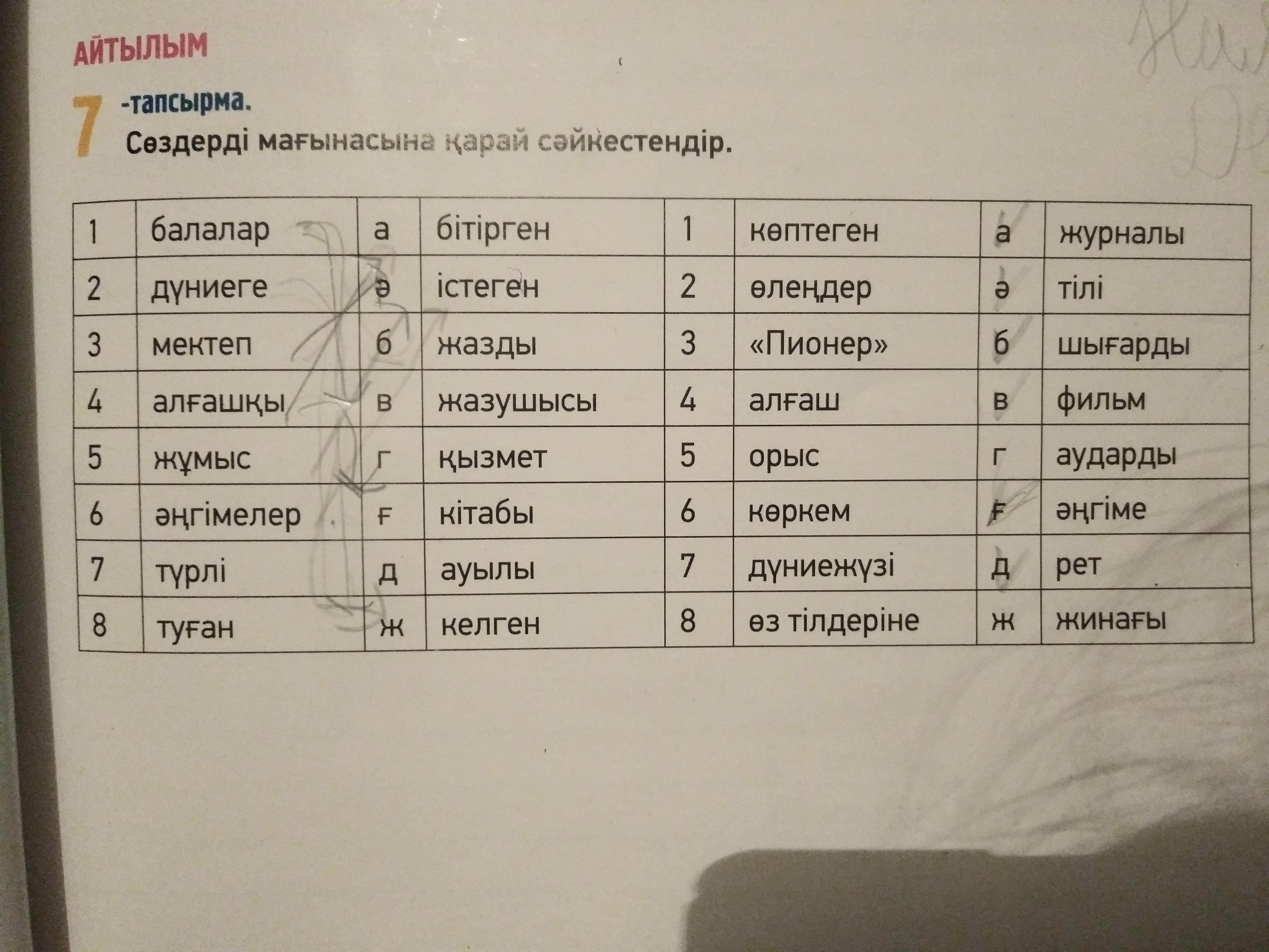 8.Туған ауылы 8.өз тілдеріне аударды.