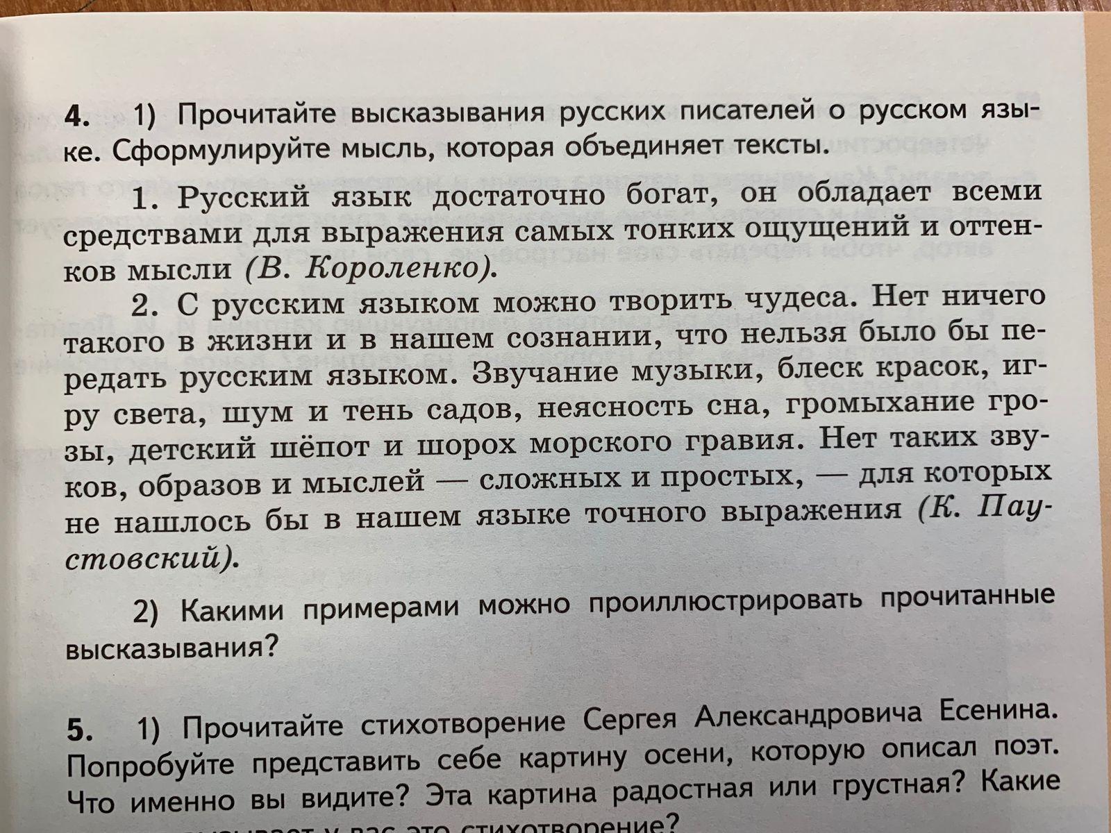 в этом тексте говорится,что в русском языке очень много слов, прилагательных и слов, что мы можем рассказать все, и описать всё на свете