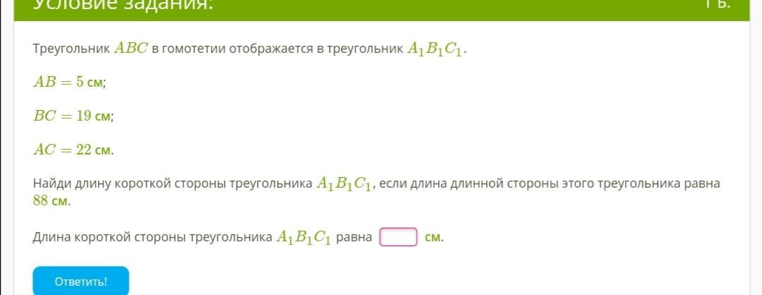 Найди длину короткой стороны A1B1C1, если длинной стороны этого треугольника равна 88см
