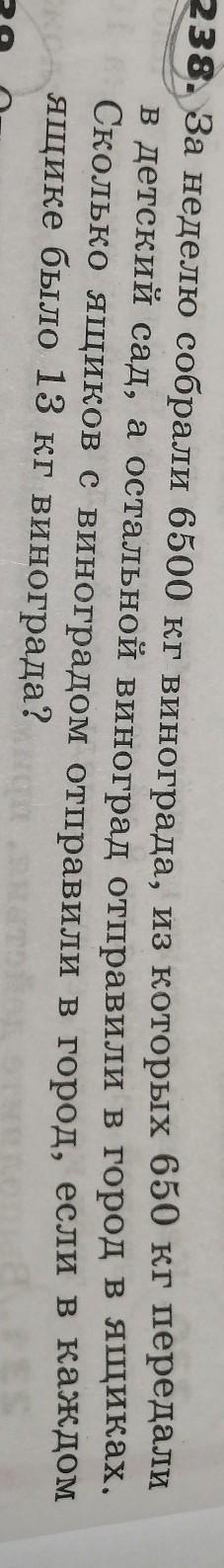 5 класс Математика помогите.За неделю собрали 6.500 кг винограда,а из которых 650кг передали в детский сад,а остальной виноград отправили в город в ящиках.Сколько ящиков с виноградом отправили а город,если в каждом ящике было 13кг винограда
