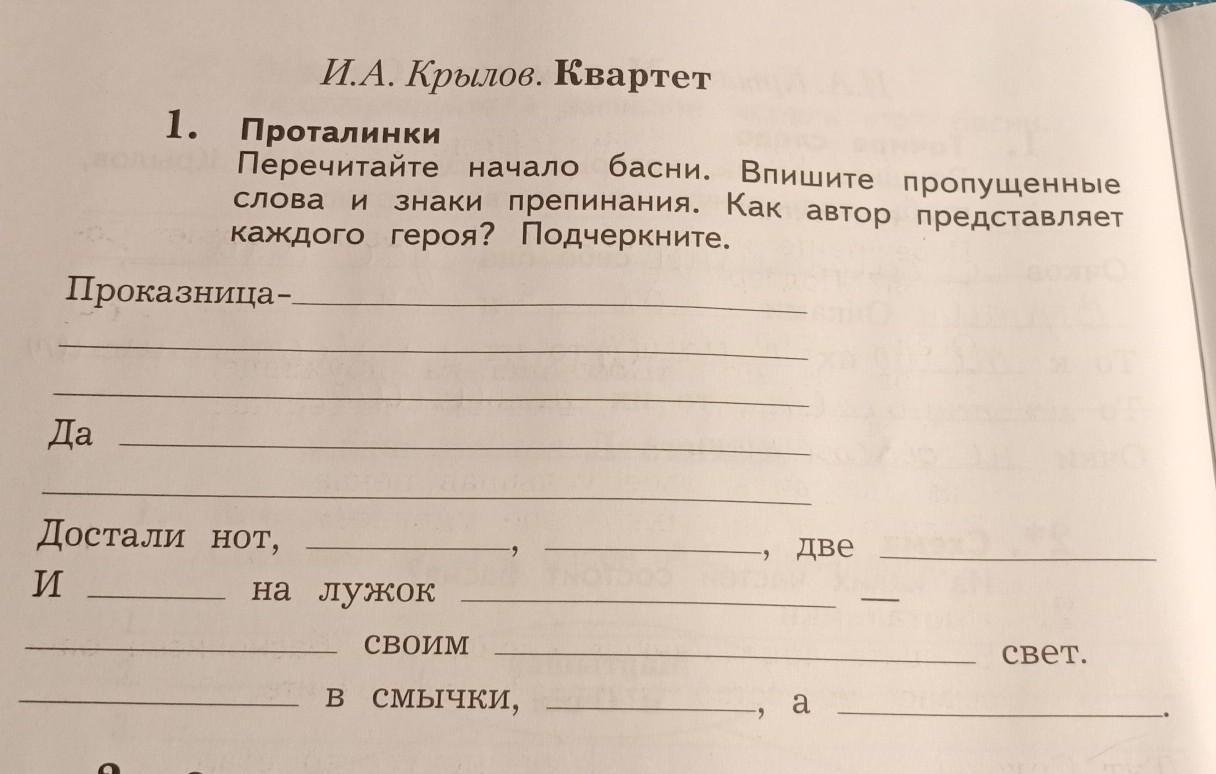 перечитайте начало басни впишите пропущенные слова и знаки препинания как автор представляет каждого героя подчеркните