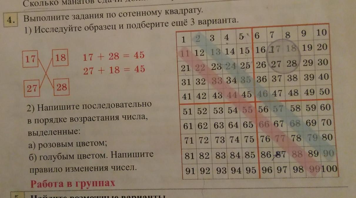 выполните задание по у сотен ему квадрату исследуйте образец и подберите ещё три варианта