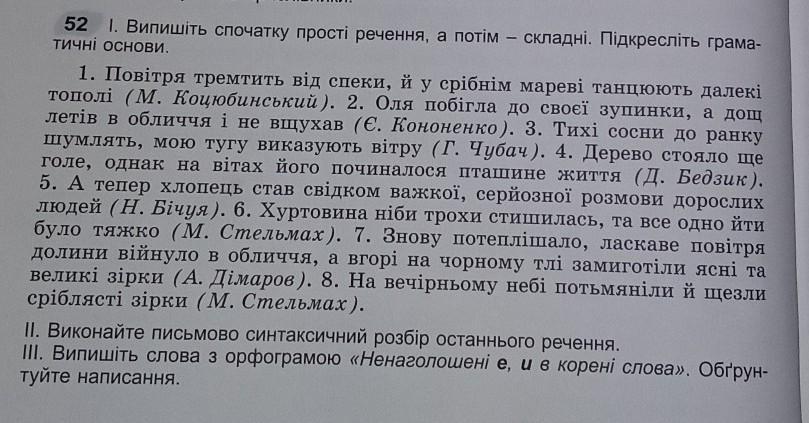 граматичні основи: __підмети__: повітря, тополі; Оля, дощ; сосни; дерево, життя; хлопець; хуртовина; повітря, зірки; зірки.