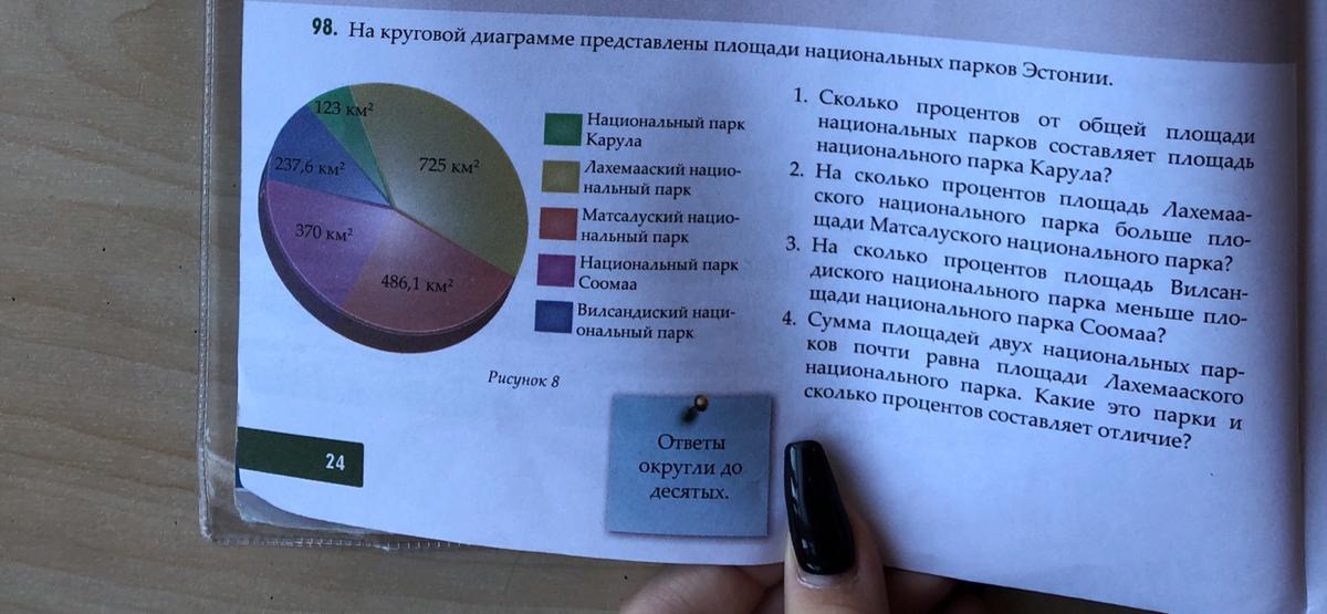 4) Вилсадиский парк + Матсалуский = 237,6 + 486,1 = 723,7 (км²);
