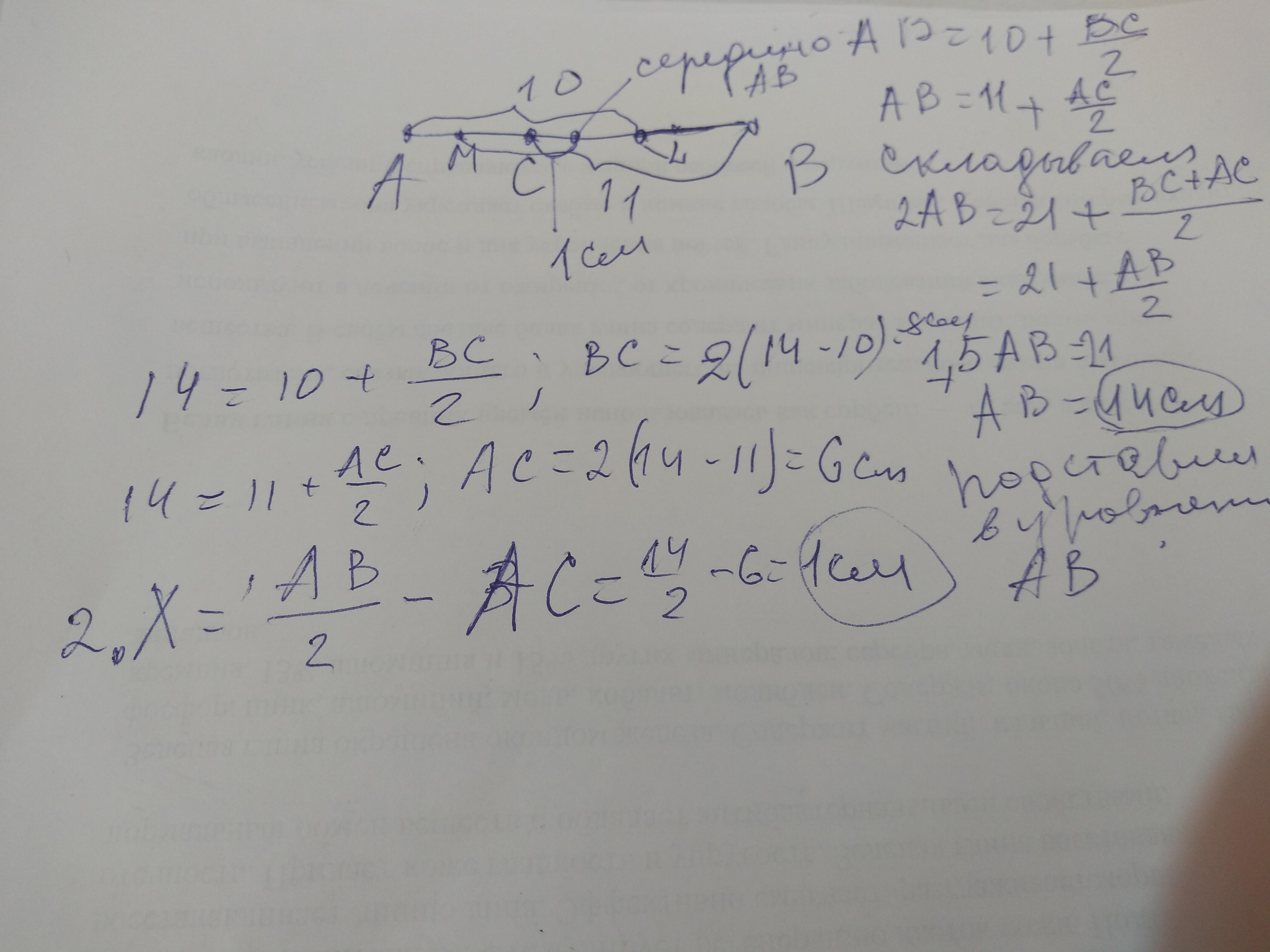 точка С внутрішня точка відрізка АВ відстань від середини від АС до точки вВ дорівнює 11 см а відстань від середини ВС до точки А 10 см.