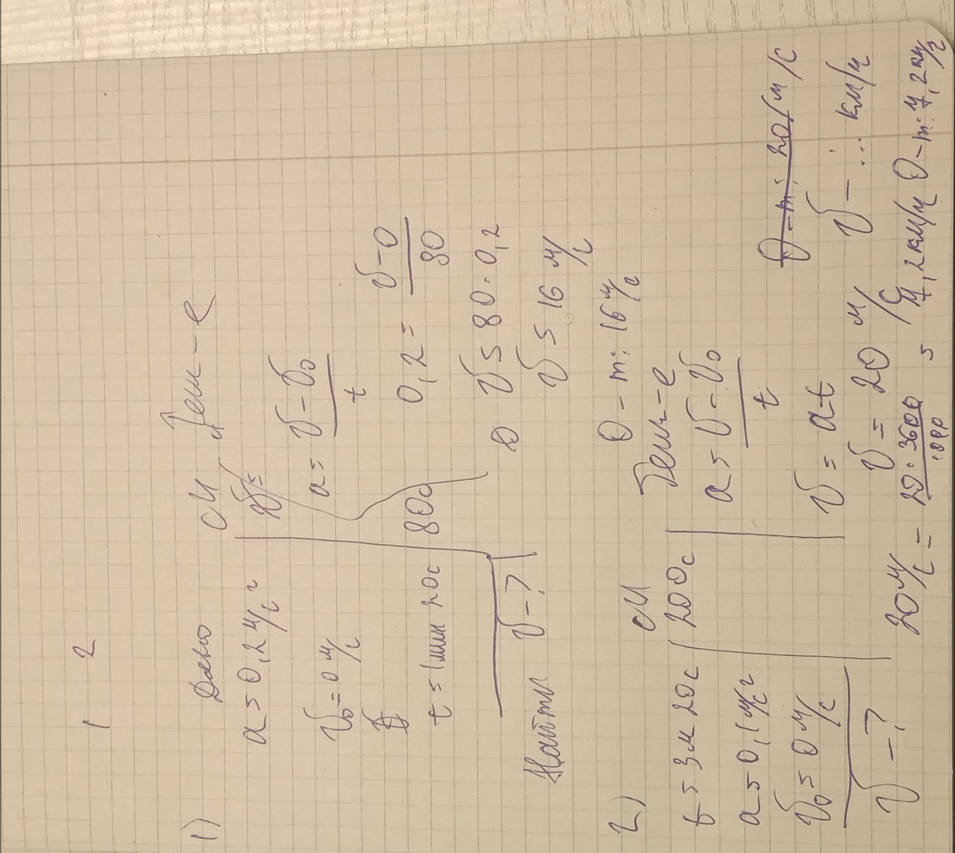 1)Электричка отходит от станции с постоянным ускорением 0,2 м/с2. Вычислите скорость электрически через 1 мин 20 с после начала движения.