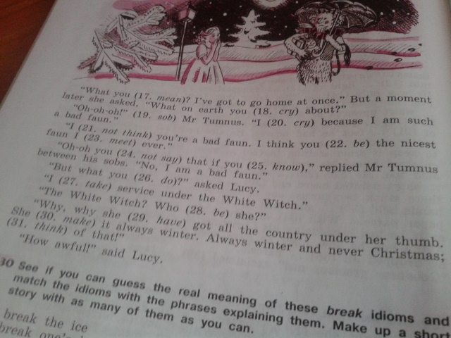 never been 2 had given 3 was 4 was drinking 5 eating 6 was talking 7 took 8