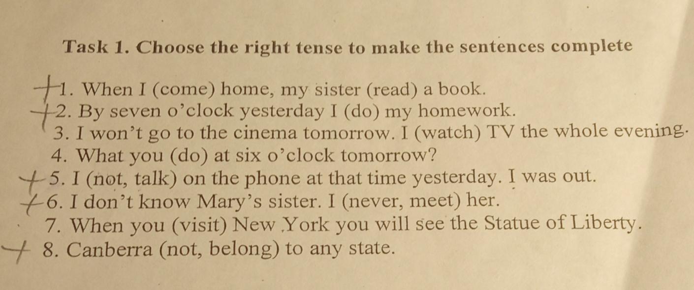 тут все правильно, задание сделать в прошедшем времени. В 1 ответе не правильно!