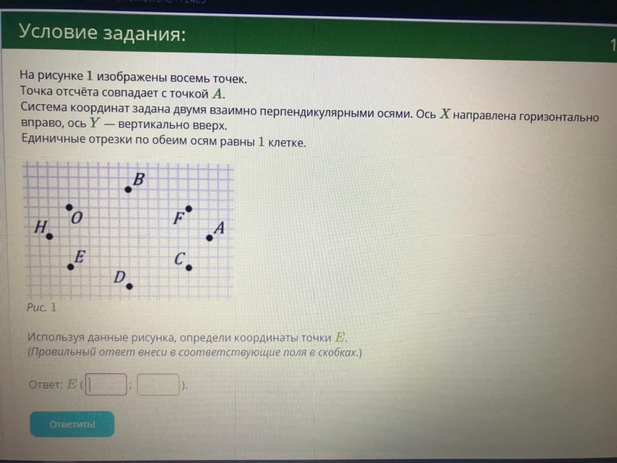 Координаты по оси Х будут отрицательными, так как точка Е лежит по левую сторону от оси АУ. Координата Y точки E также будет отрицательна.