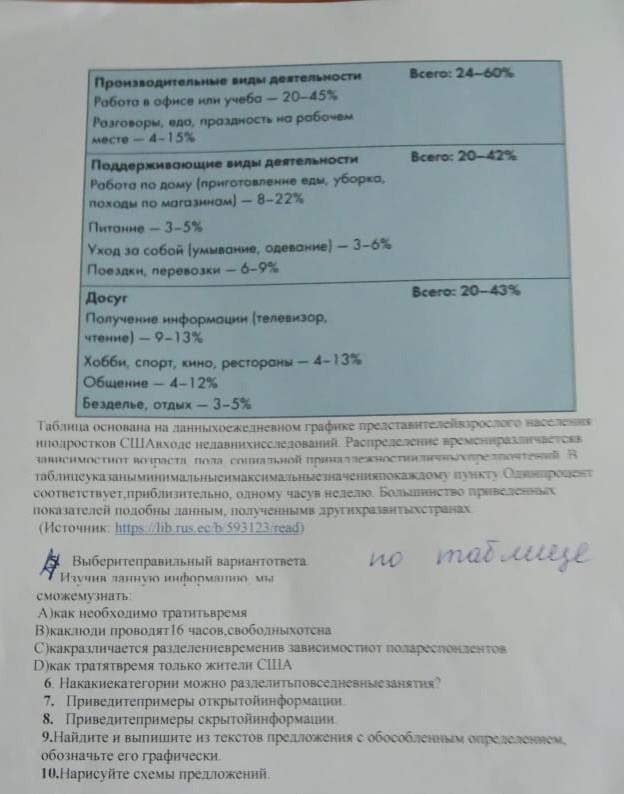 В таблице написано как правильно распоряжаться временем