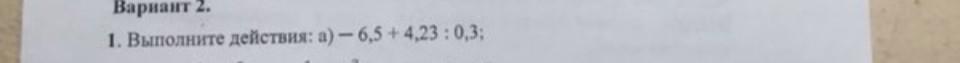 Разобьём этот пример, на два пример. 1)4,23:0,3 и 2)-6,5+(Результат первого выражения)