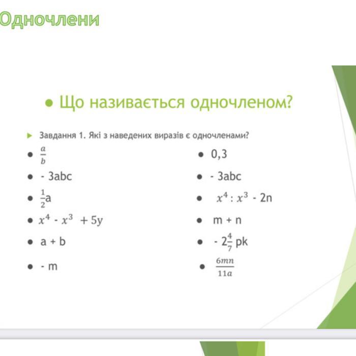 Одночлен – это выражение, содержащее числа, натуральные степени переменных и их произведения и нет никаких других действий .