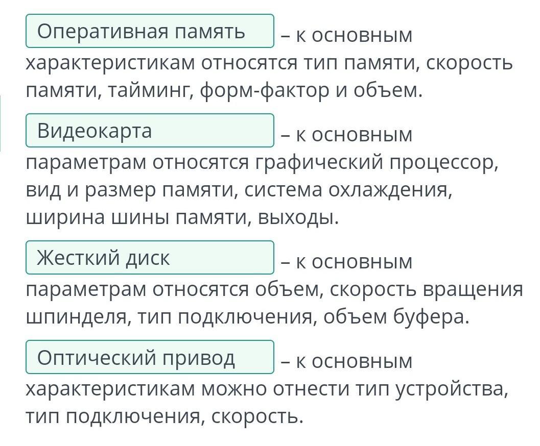 « » – к основным характеристикам относятся тип памяти, скорость памяти, тайминг, форм-фактор и объем.
